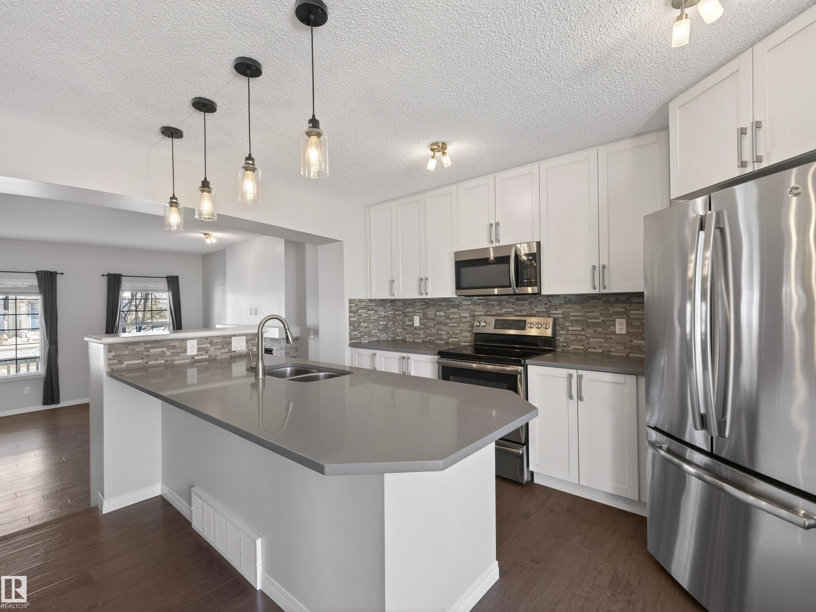 Welcome to 1267 Chappelle Blvd in the heart of the vibrant Chappelle community in SW Edmonton. Offering just over 2,370 sq.ft. of living space across three levels, this home delivers exceptional value with extensive upgrades, including a fully developed basement, renovated laundry room, and insulated, heated double detached garage. The bright open-concept main floor features a stylish kitchen with SS appliances, ample cabinetry, dining area, and a half bath. Upstairs offers a spacious primary bedroom with walk-in closet and spa-like 5-piece ensuite, plus two additional bedrooms, a full bath, and upper-level laundry. The finished basement adds a flex room, full bathroom, recreation area, and storage. Enjoy central A/C (2022), a composite deck, expanded patio, fire pit, and a fully fenced landscaped yard. Conveniently located near schools, shopping, and Community League amenities including a splash park, rink, and year-round events. Move-in ready and ideal for those seeking lifestyle & community.