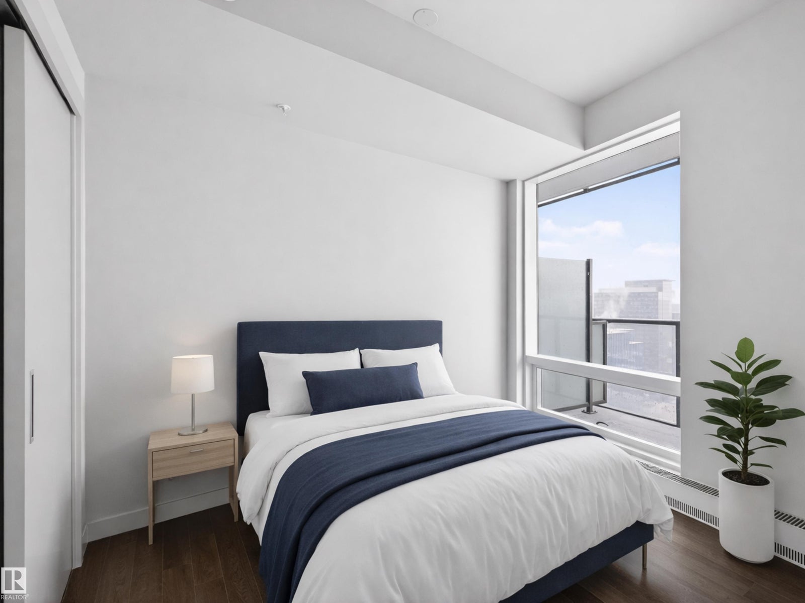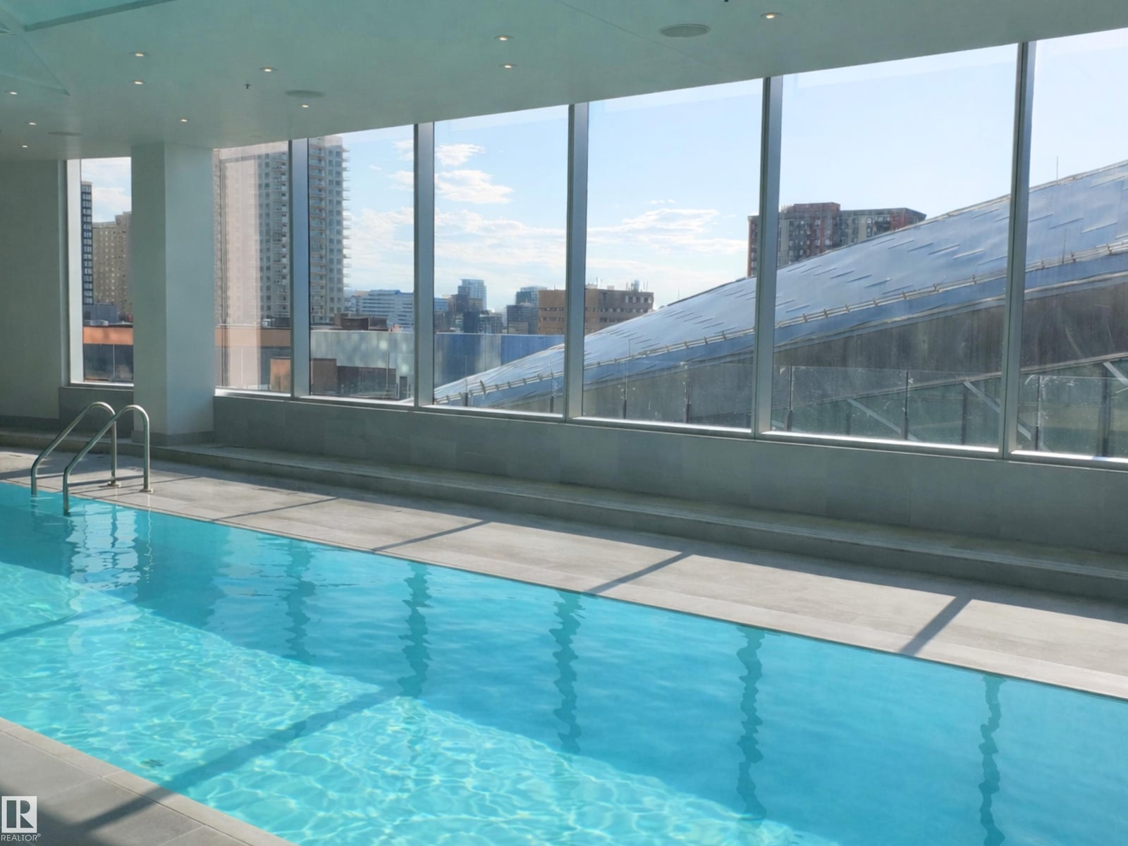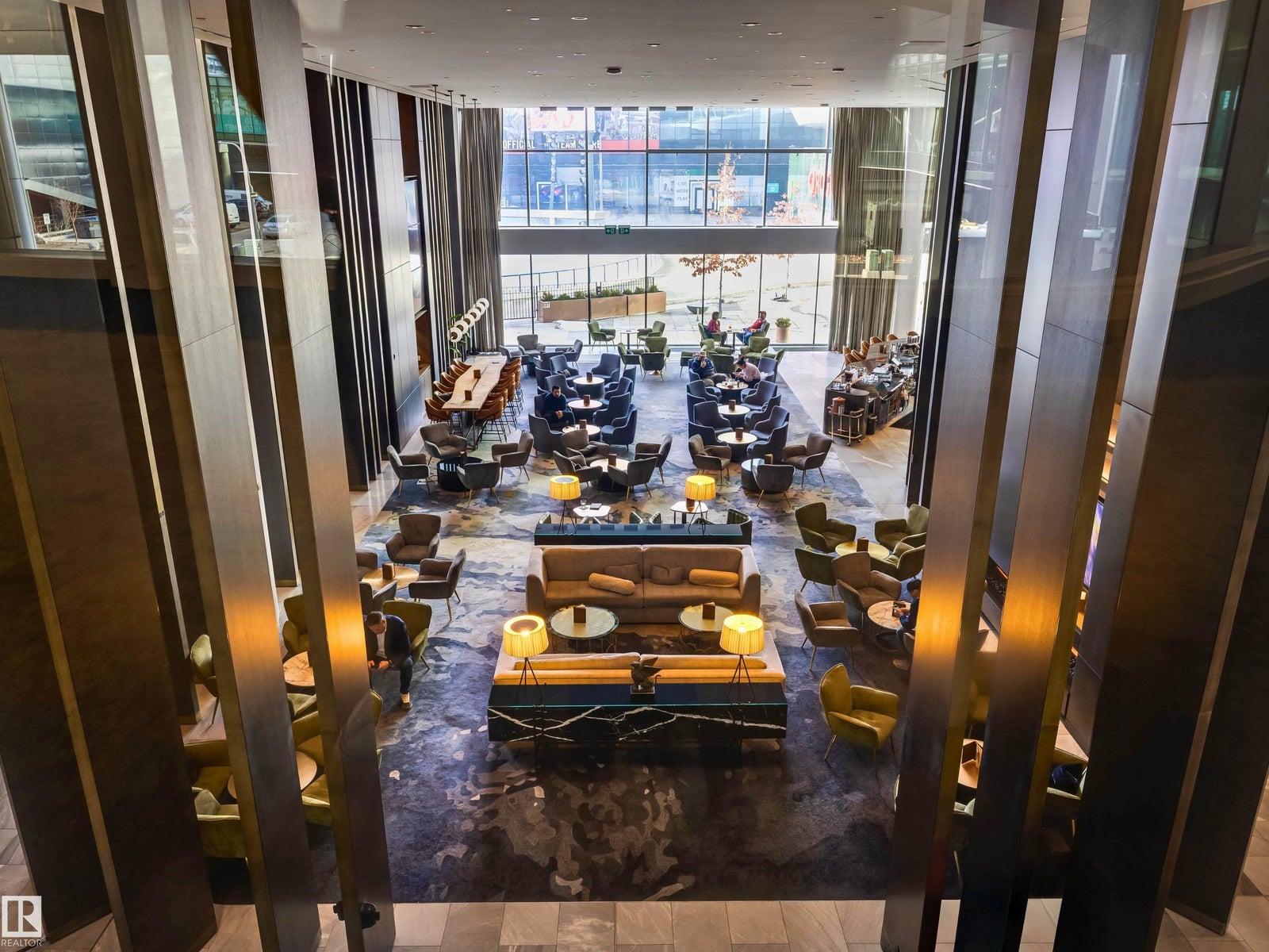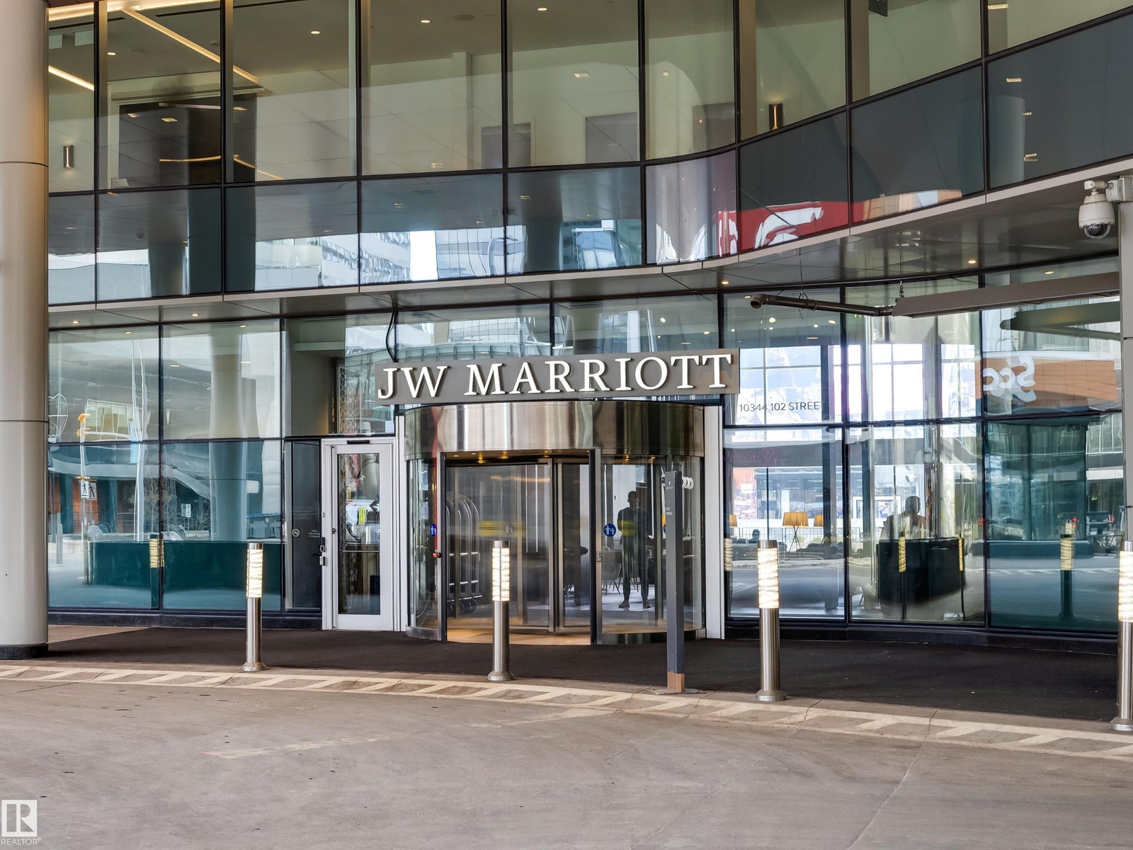 Welcome to The Legends Private Residences, located above the prestigious JW Marriott in the heart of the Ice District. This stylish, move-in-ready, one-bedroom, one-bathroom residence offers in-suite laundry, engineered hardwood flooring, floor-to-ceiling windows, and balcony with beautiful sunset views. The modern kitchen features quartz countertops and high-quality built-in Bosch and Miele appliances, combining sleek design with everyday functionality. The unit includes a titled parking stall, storage unit, along with access to the JW Marriott’s premium amenities. Enjoy membership to the Archetype Fitness Centre, indoor pool, hot tub, steam room, and spa, plus exclusive use of The Residence Club amenities including a rooftop patio, billiards lounge, conference room, outdoor BBQ patio, dog run, and 24/7 concierge and security. Direct pedway access connects you to Rogers Place, restaurants, grocery, and more. Experience elevated living at The Legends Private Residences.