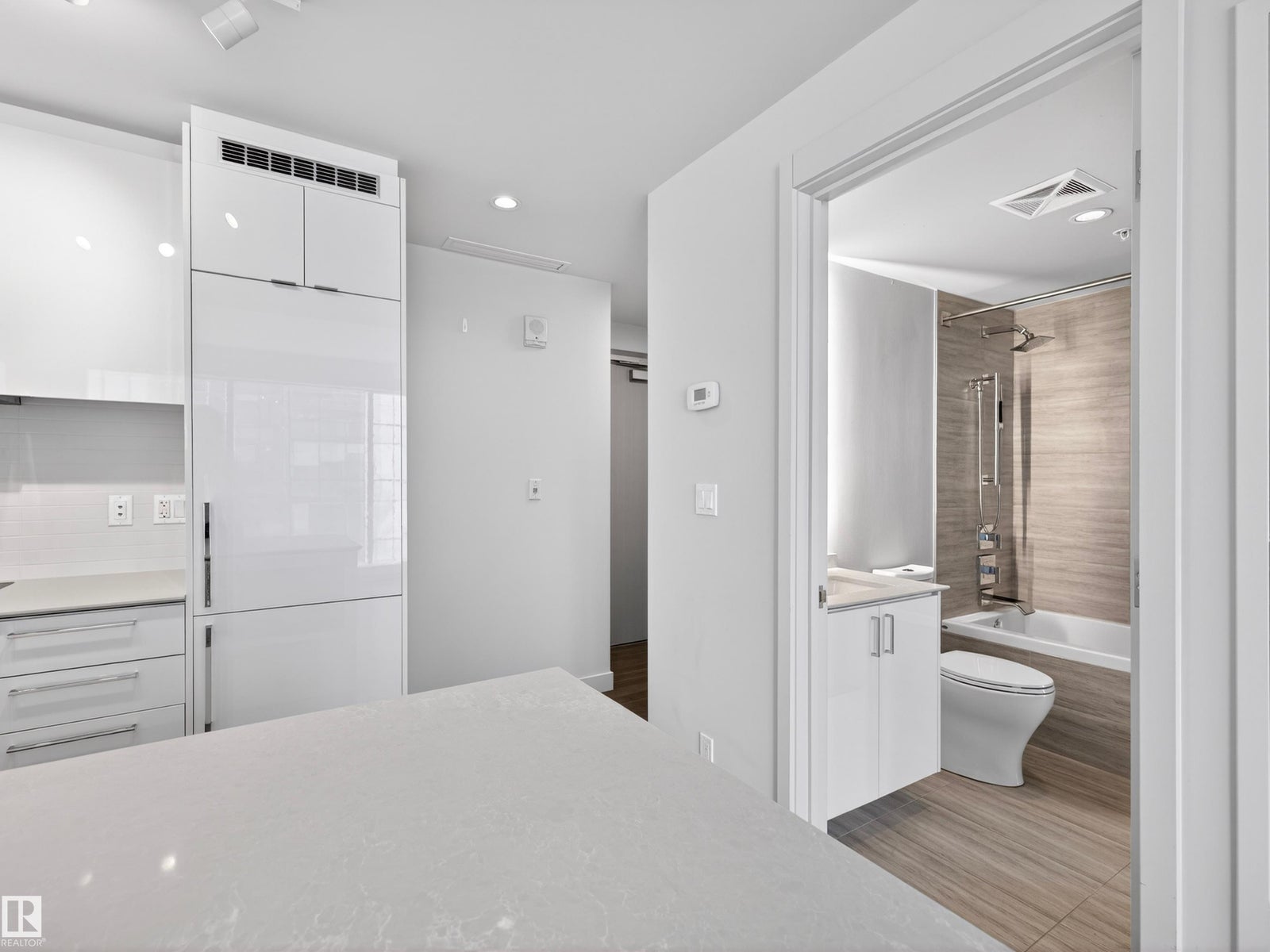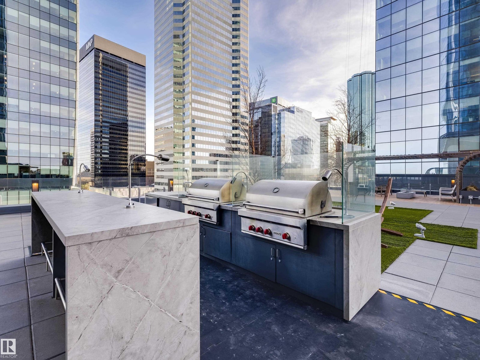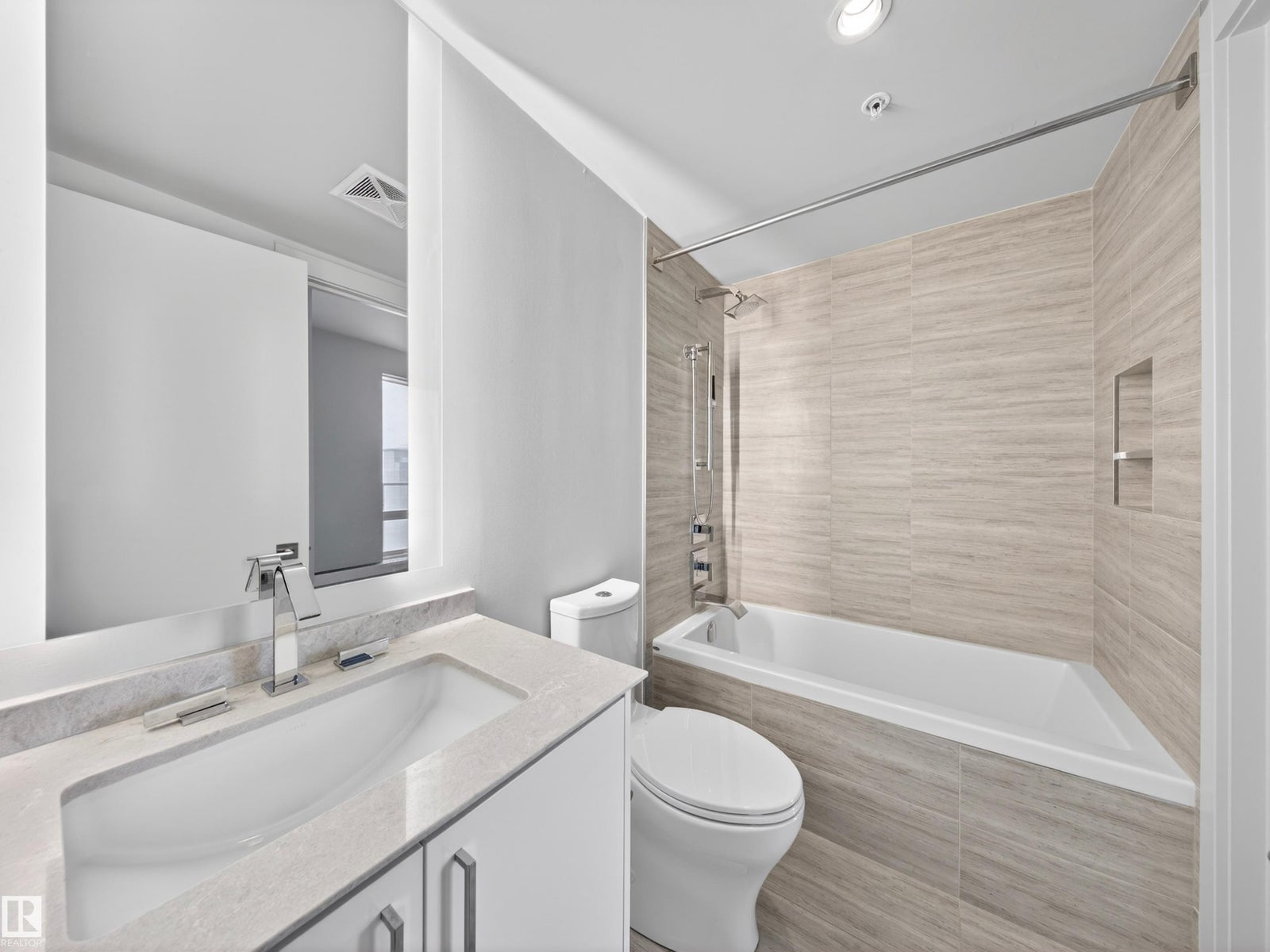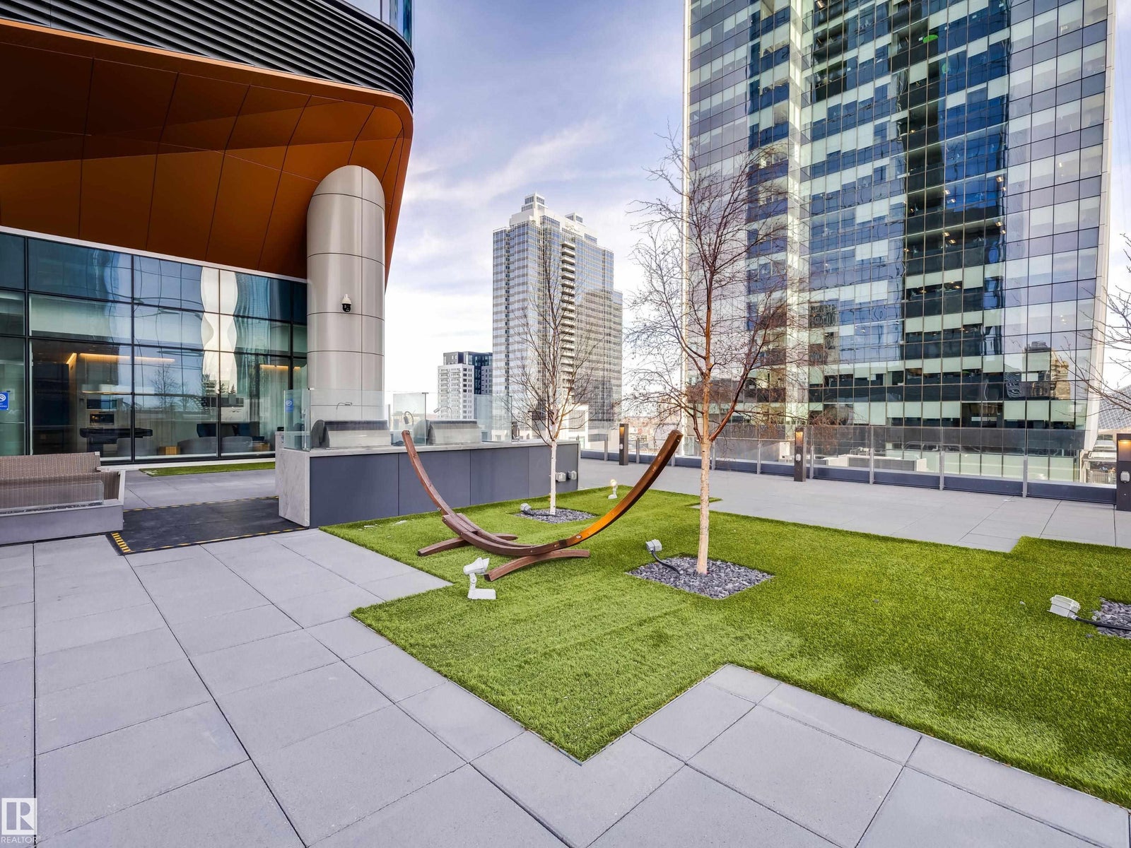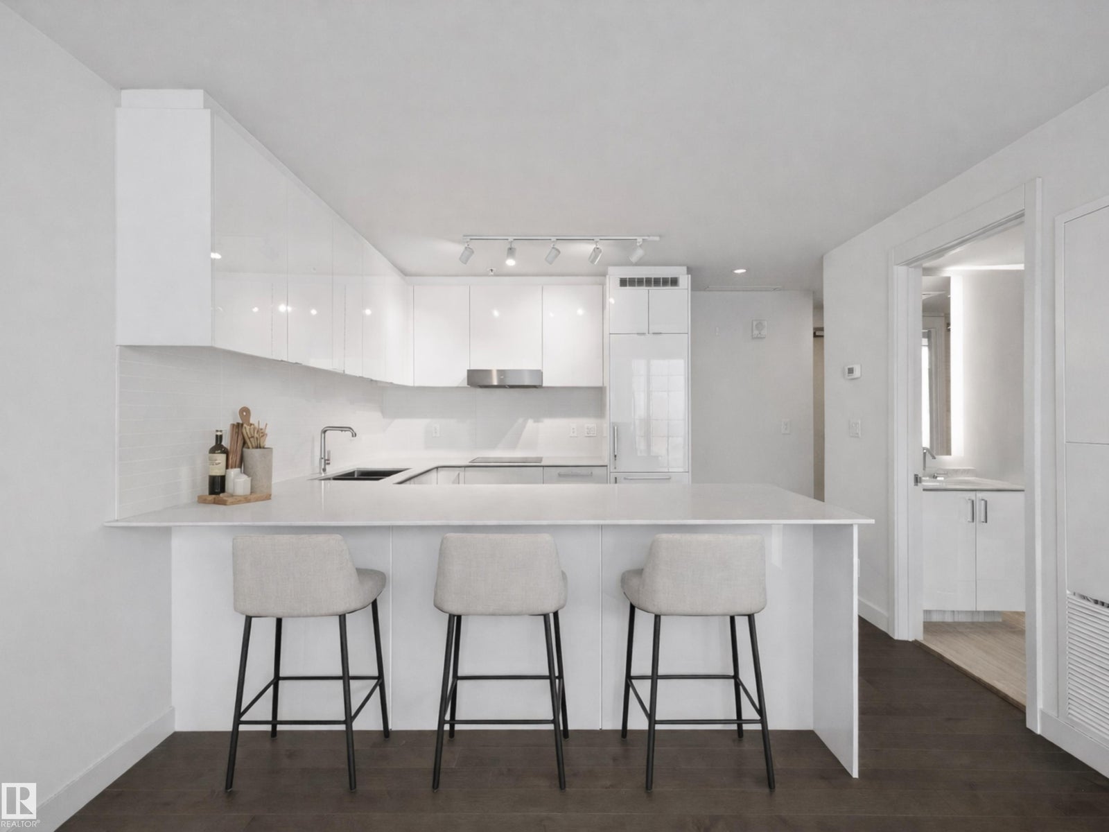 Welcome to The Legends Private Residences, located above the prestigious JW Marriott in the heart of the Ice District. This stylish, move-in-ready, one-bedroom, one-bathroom residence offers in-suite laundry, engineered hardwood flooring, floor-to-ceiling windows, and balcony with beautiful sunset views. The modern kitchen features quartz countertops and high-quality built-in Bosch and Miele appliances, combining sleek design with everyday functionality. The unit includes a titled parking stall, storage unit, along with access to the JW Marriott’s premium amenities. Enjoy membership to the Archetype Fitness Centre, indoor pool, hot tub, steam room, and spa, plus exclusive use of The Residence Club amenities including a rooftop patio, billiards lounge, conference room, outdoor BBQ patio, dog run, and 24/7 concierge and security. Direct pedway access connects you to Rogers Place, restaurants, grocery, and more. Experience elevated living at The Legends Private Residences.